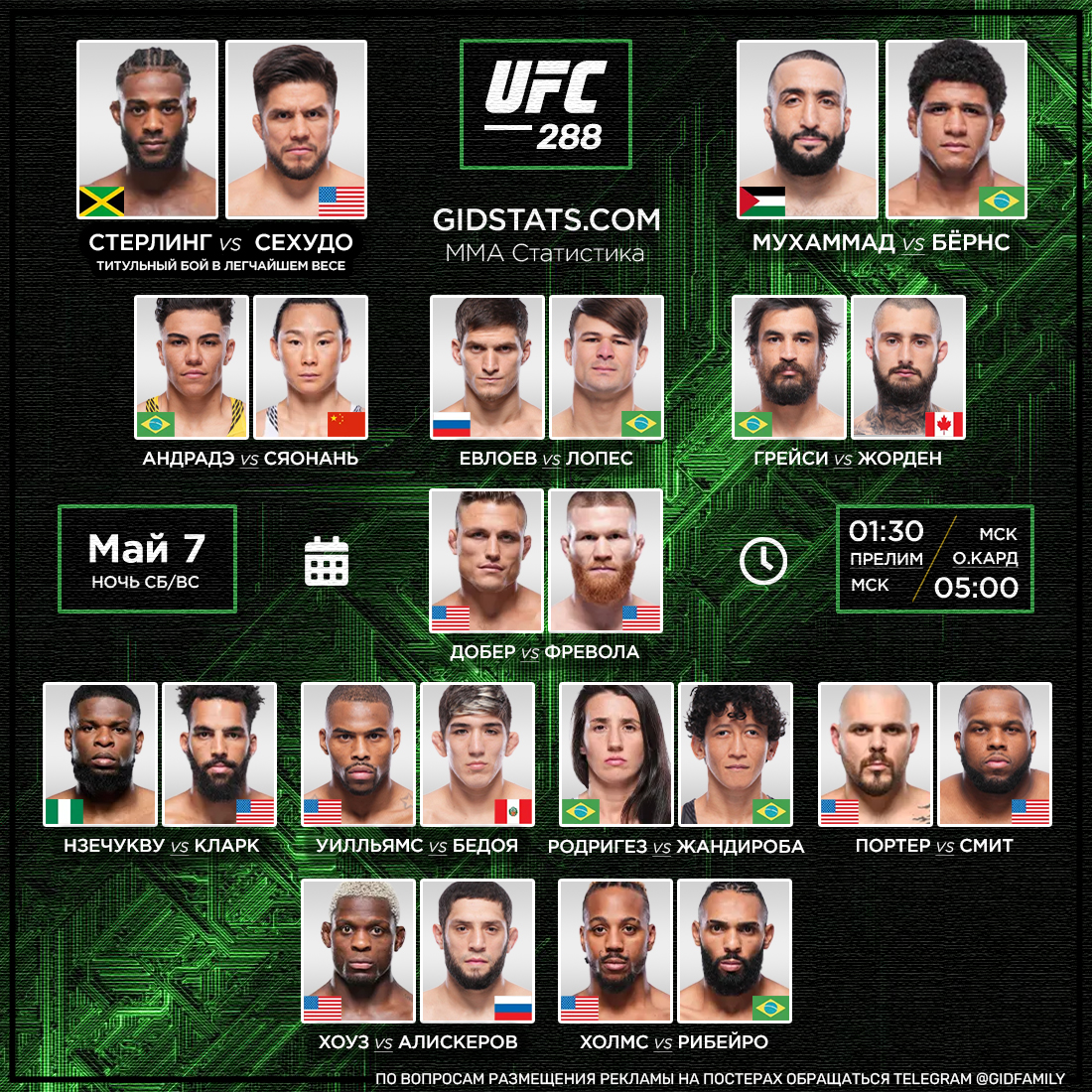 Время старта турнира 01:30 МСК. А вот сама трансляция ЮФС 288 будет на: